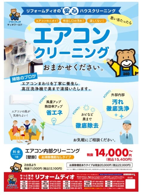 アヤハディオのエアコンクリーニング料金は以下の通りです。