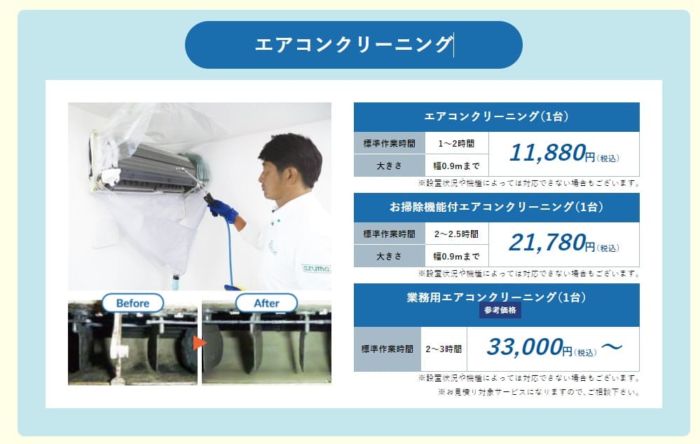 グッデイのエアコンクリーニング料金は以下の通りです。